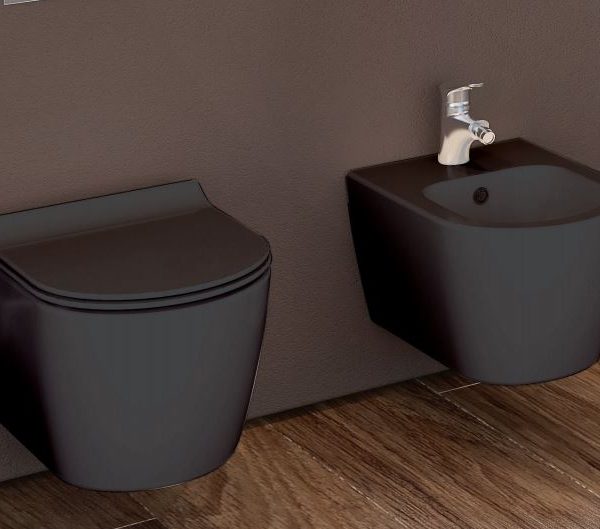 Εντοιχισμένη κρεμαστή πορσελάνινη λεκάνη μαύρο ματ ALPHA RIMLESS