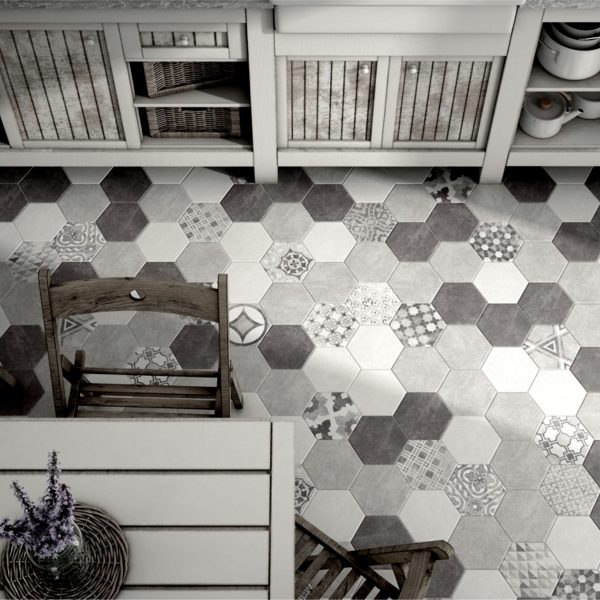 Πλακάκι πορσελανάτο HEXATILE CEMENT WHITE, GREY, BLACK