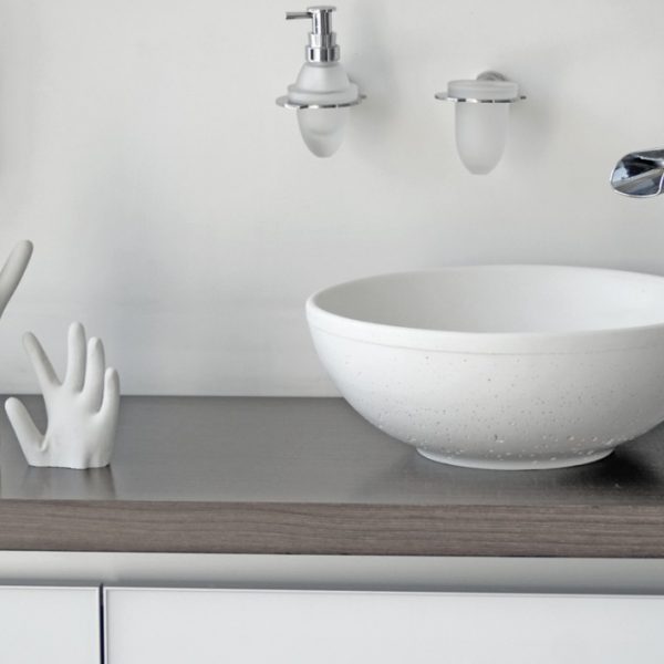 Χειροποίητος στρογγυλός νιπτήρας από μπετό JELIA BIANCO 1, OLIVE LEAF, BICOLORE, BLACK