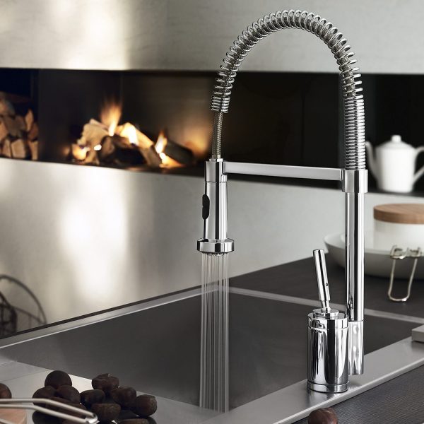 Μπαταρία κουζίνας με ένα μοχλό και ευέλικτο λαιμό με σπιράλ BILLY CHROME