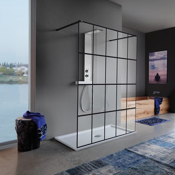 Χώρισμα ντουζιέρας από κρύσταλλο ασφαλείας με ματ μαύρες γραμμές, διάφανο και φιμέ B4073